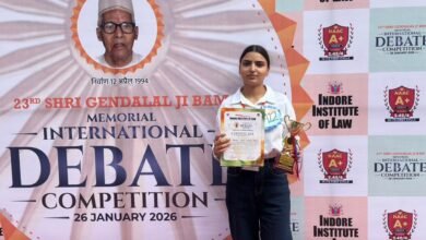 इंदौर लॉ कॉलेज, राऊ में हाल ही में आयोजित इंटरनेशनल डिबेट कंपटीशन–2026 में होलकर विज्ञान महाविद्यालय की प्रतिभाशाली छात्रा प्रतिभा…